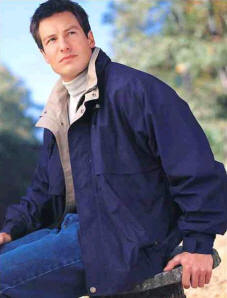 Panorama Jackets (J-20) The Panorama jacket features a water resistant shell constructed of 65% polyester / 35% cotton poplin, with contrasting color cotton / polyester lining. The jacket has an elastic waistband and cuff with adjustable velcro. It also features two front pockets, an inner chest pocket with zipper, and full storm and outer placket. The hood is easily concealed in collar. |